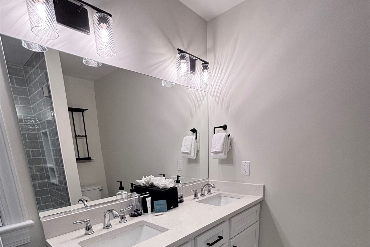 Bathroom essentials (hand soap, shampoo, conditioner, body wash, body lotion, makeup remover wipes)