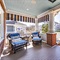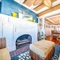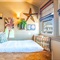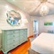 Each of the eight themed bedrooms offers a unique ambiance, from coastal blues and nautical touches to earthy, nature-inspired décor. Every room tells its own story, offering both comfort and character. One standout bedroom features a bold blue and white beach theme, cozy built-in beds, and nautical accents, making it a favorite for guests of all ages. The bathrooms are equally impressive, featuring spa-like glass showers, stylish tilework, and elegant fixtures that add a touch of sophistication.