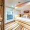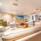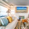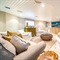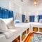 Downstairs, the expansive lounge area offers plush seating and a laid-back coastal vibe, ideal for unwinding after a day at the beach. And for a truly one-of-a-kind experience, the brick-walled, rustic-chic lounge with hanging chairs and bohemian décor invites you to relax in style.