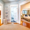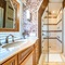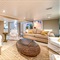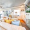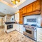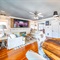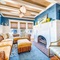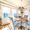 As you step inside, you'll be greeted by a warm and inviting interior, where classic brick walls in the cozy living room create a charming and relaxed atmosphere. The well-equipped chef’s kitchen, featuring custom cabinetry, high-end appliances, and elegant tilework, makes meal prep effortless, while the open dining area, adorned with a stunning chandelier and coastal décor, provides the perfect setting for shared laughter and connection.