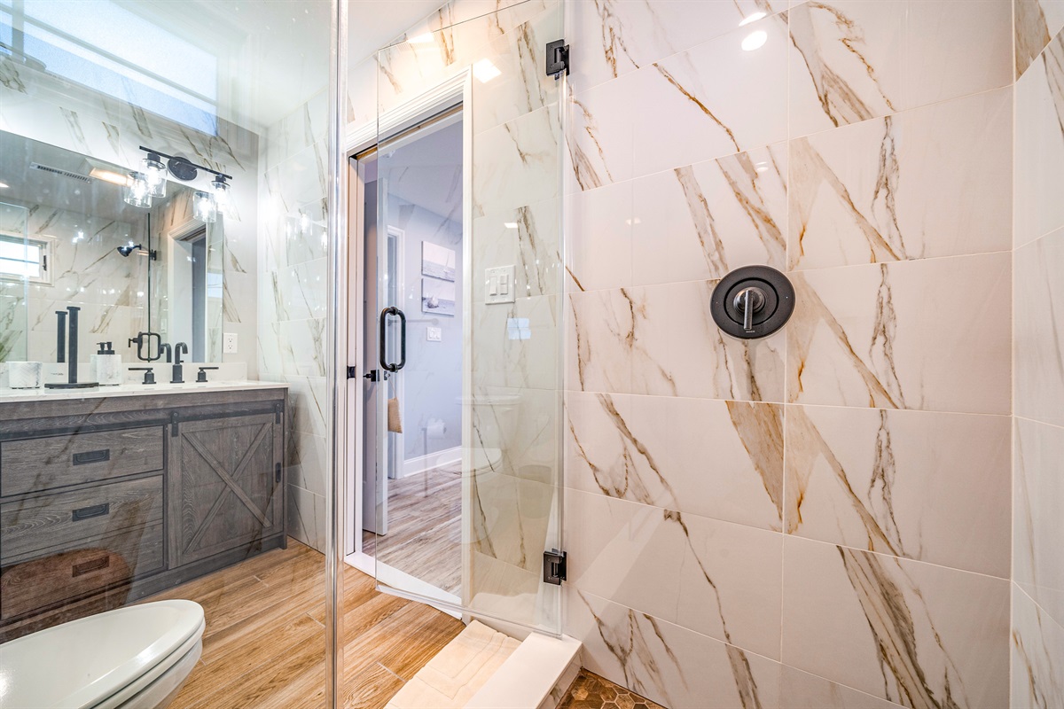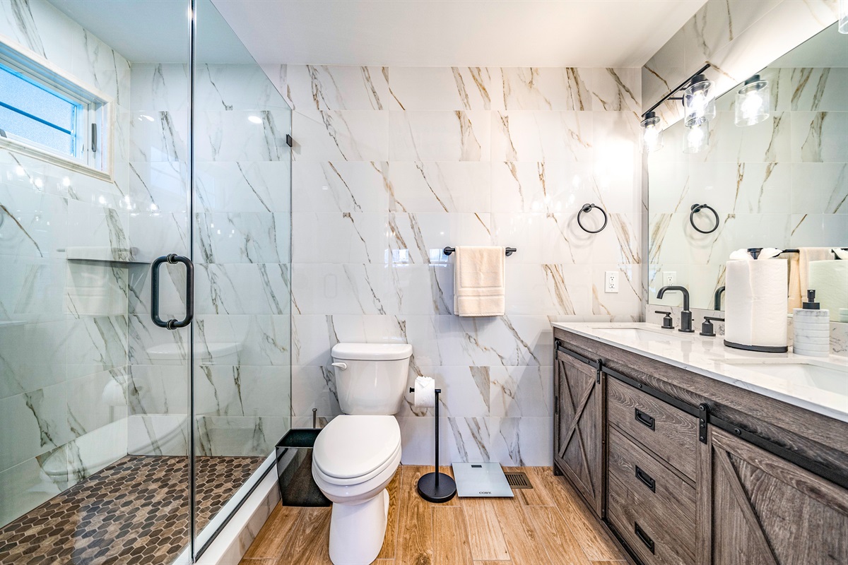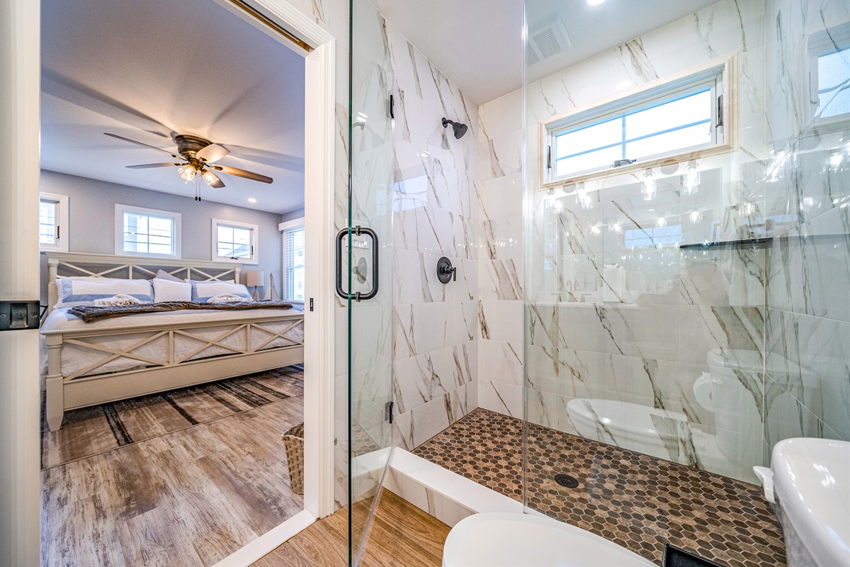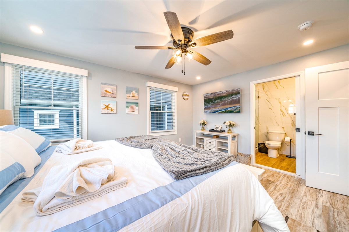 Bedroom 1: King bed with an ensuite full bathroom