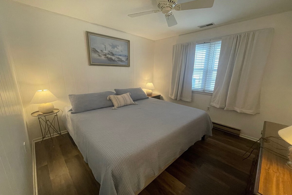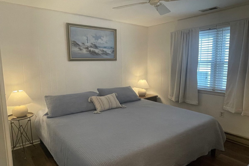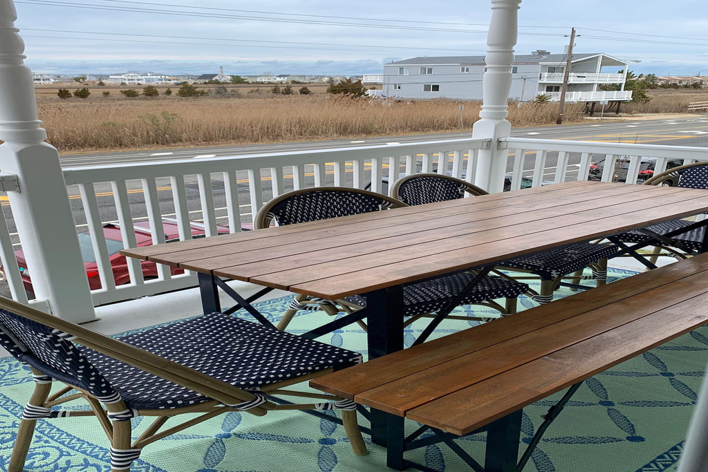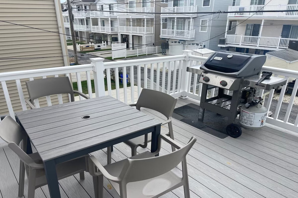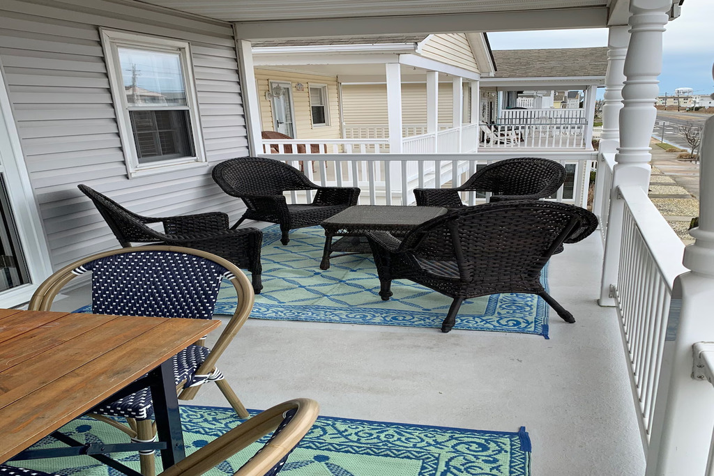 Welcome to your perfect Ocean City beach escape! This renovated second-floor condo, located on the ocean side of West Avenue, is just two short blocks from the beach and offers beautiful unobstructed sunset views over the bay wetlands. The home comfortably sleeps up to 8 guests with 3 bedrooms and 2 full bathrooms, including a primary bedroom with a king bed and private ensuite, a second bedroom with a king bed, and a third bedroom with two full beds. A queen pull-out sofa in the living room provides additional sleeping space. Inside, you’ll find a bright open living area and an updated kitchen with modern appliances, perfect for gathering after a day at the beach. Step outside to enjoy the covered front porch, an ideal spot for morning coffee or evening cocktails while watching the sunset, or relax on the rear deck with a propane grill and outdoor seating. Additional conveniences include a private shed with beach equipment, an enclosed outdoor shower, a ground-level mudroom/laundry area with a toilet, and driveway parking for one vehicle with additional street parking available. The location is incredibly walkable—just one block to Uncle Bill’s Pancake House and Aunt Betty’s Ice Cream and only a few blocks to shops, restaurants, playgrounds, courts, and local favorites like Acme, Wawa, CVS, Randazzo’s, and bike rentals. Whether you're planning beach days, sunset evenings, or family adventures around town, this comfortable coastal retreat offers the perfect home base for your Ocean City vacation.