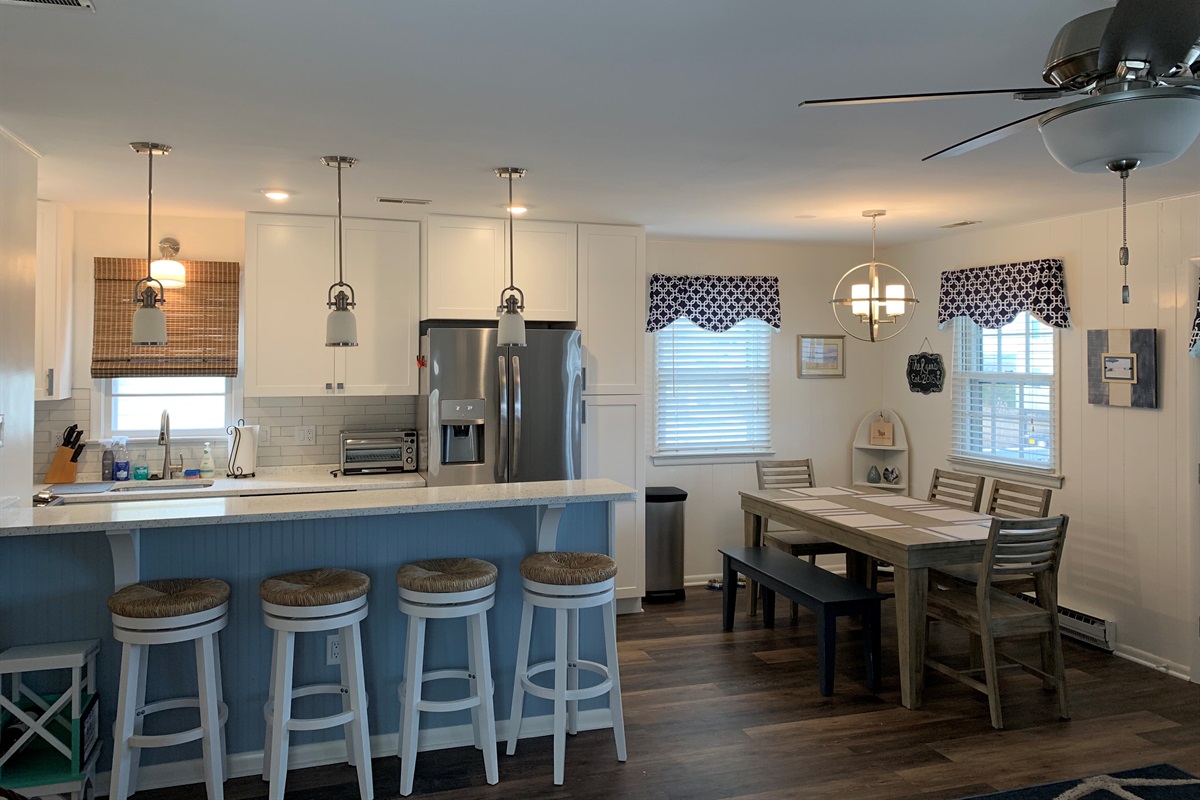 Inside, you’ll find a bright open living area and an updated kitchen with modern appliances, perfect for gathering after a day at the beach.