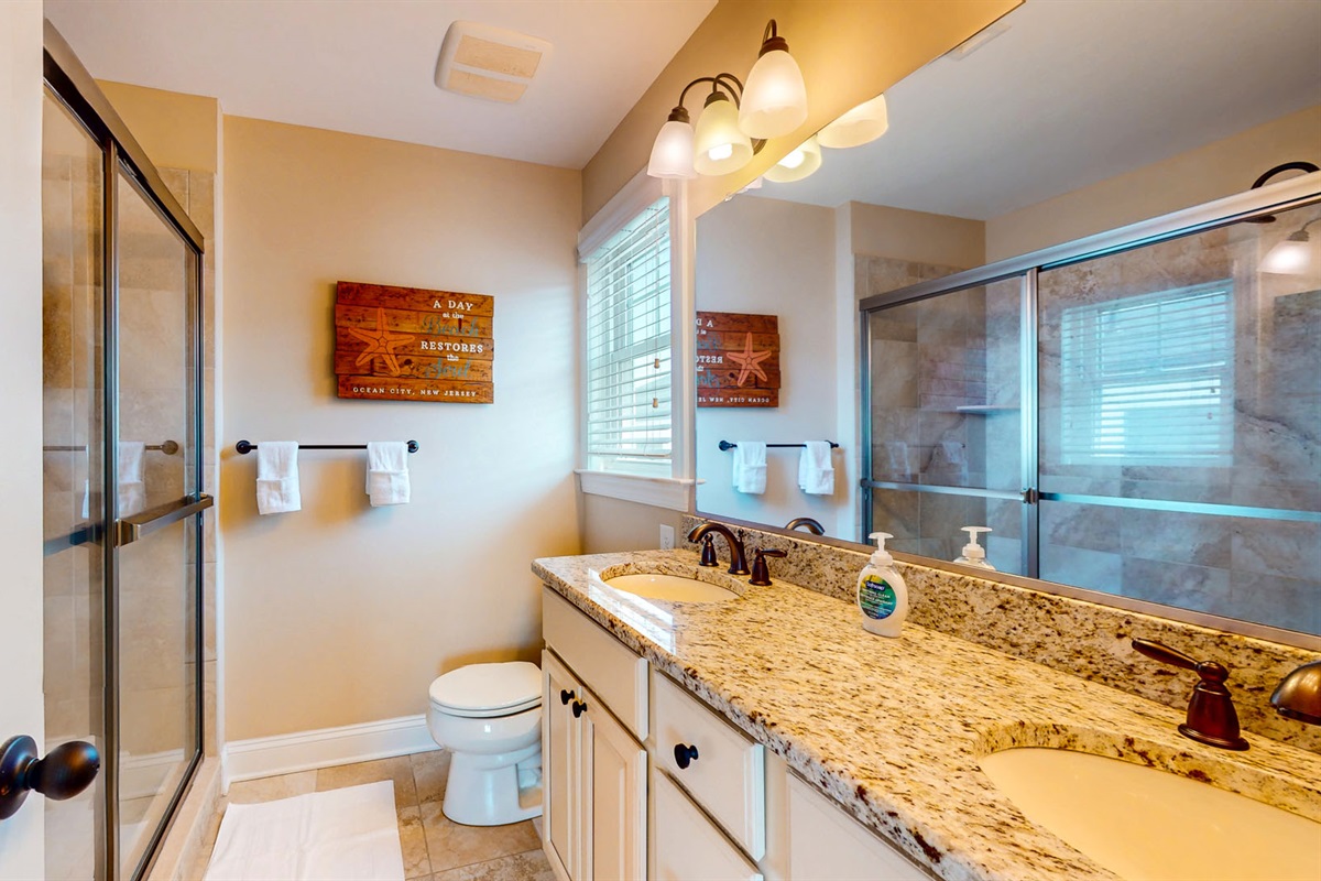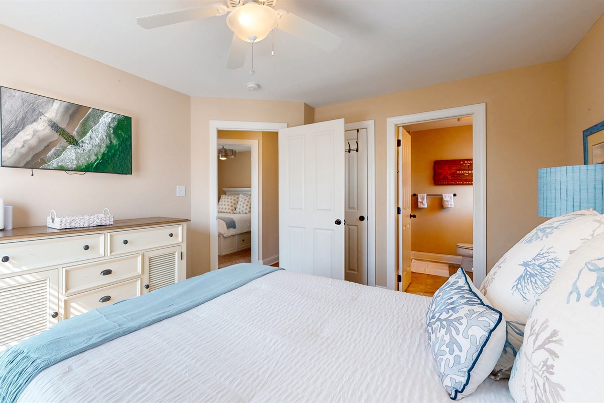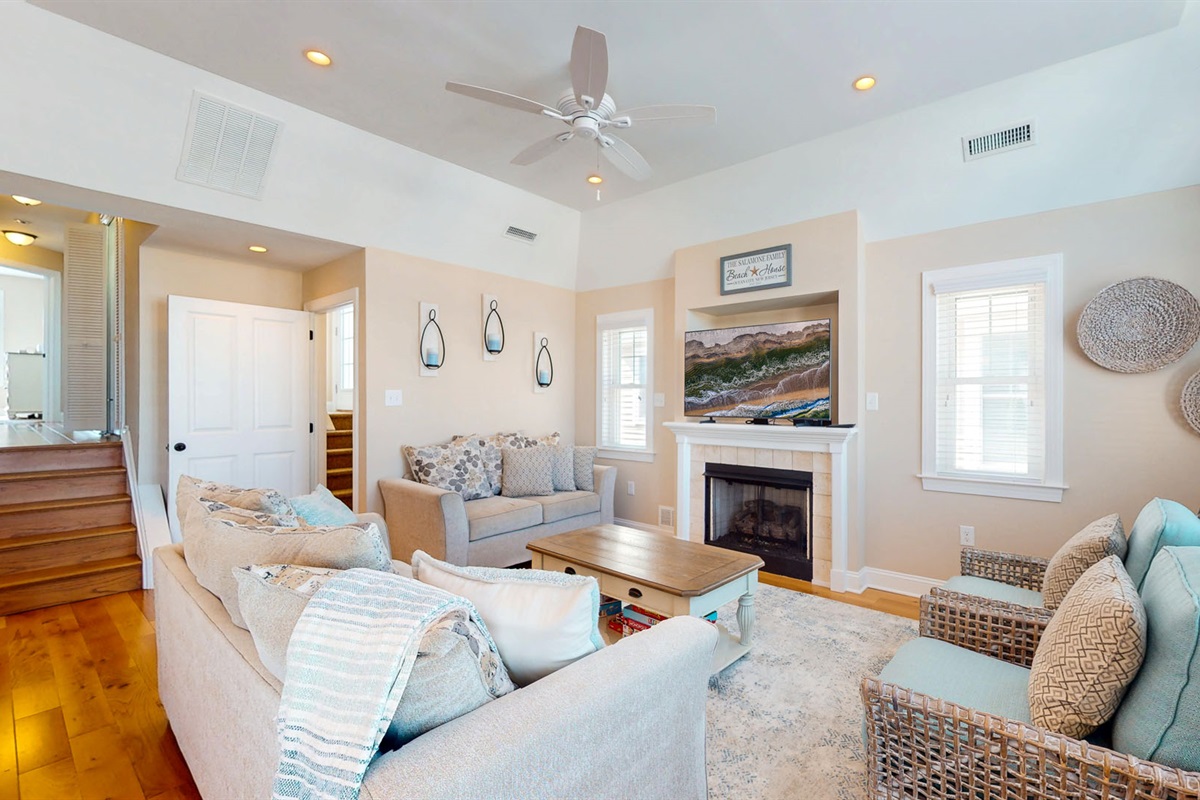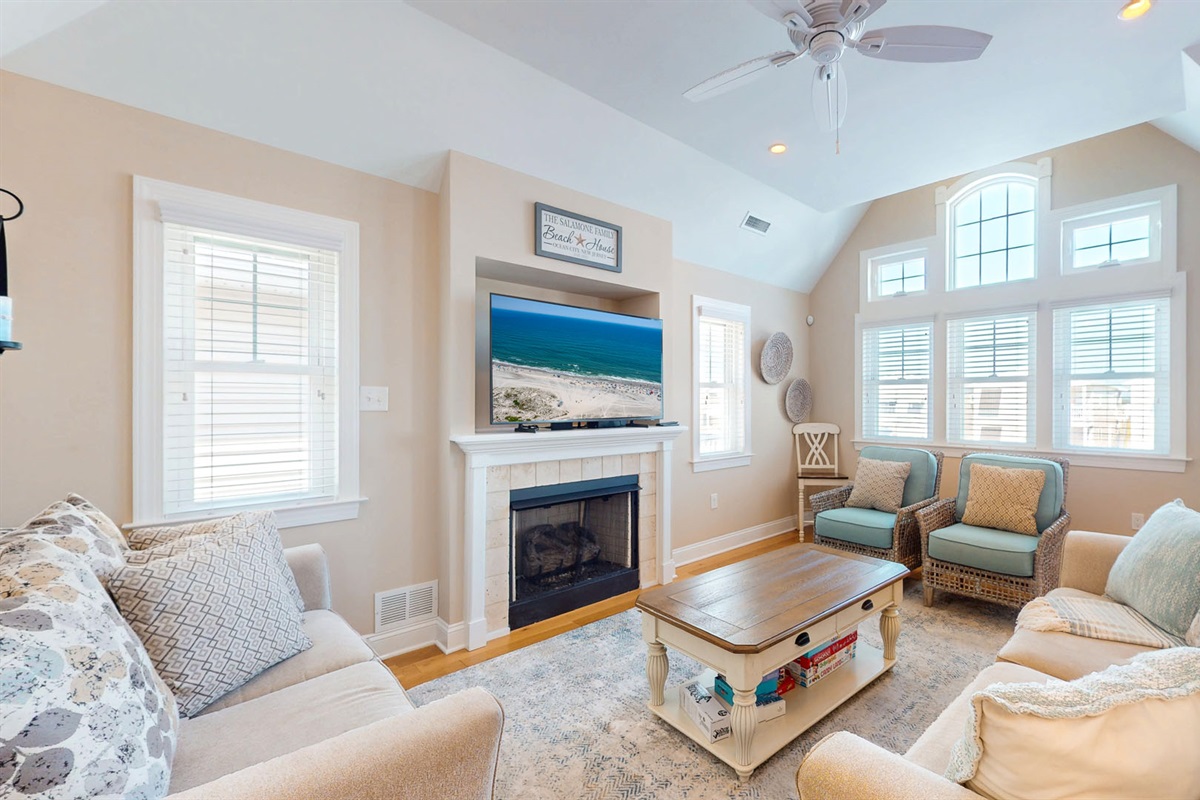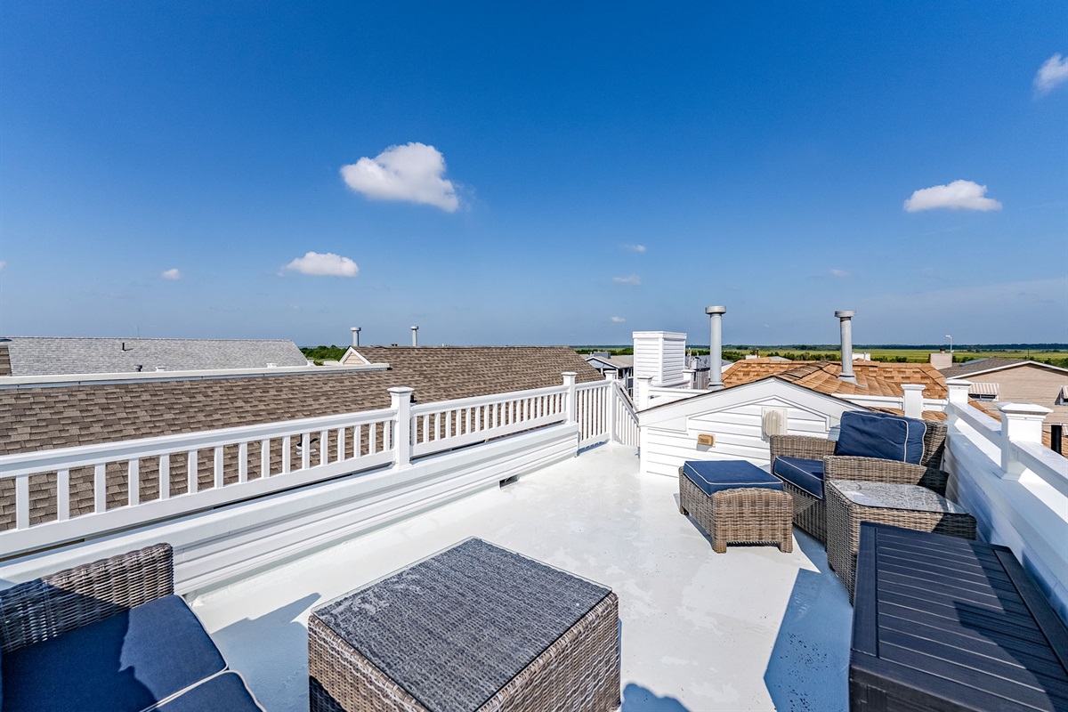 Outside, enjoy not just one, but two stunning outdoor spaces: a front deck perfect for people-watching and a rooftop deck for taking in those unbeatable sunset views. Rinse off sandy toes in your private outdoor shower after a day at the beach or an afternoon exploring Corson’s Inlet State Park, just a few blocks away.