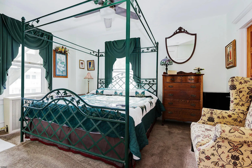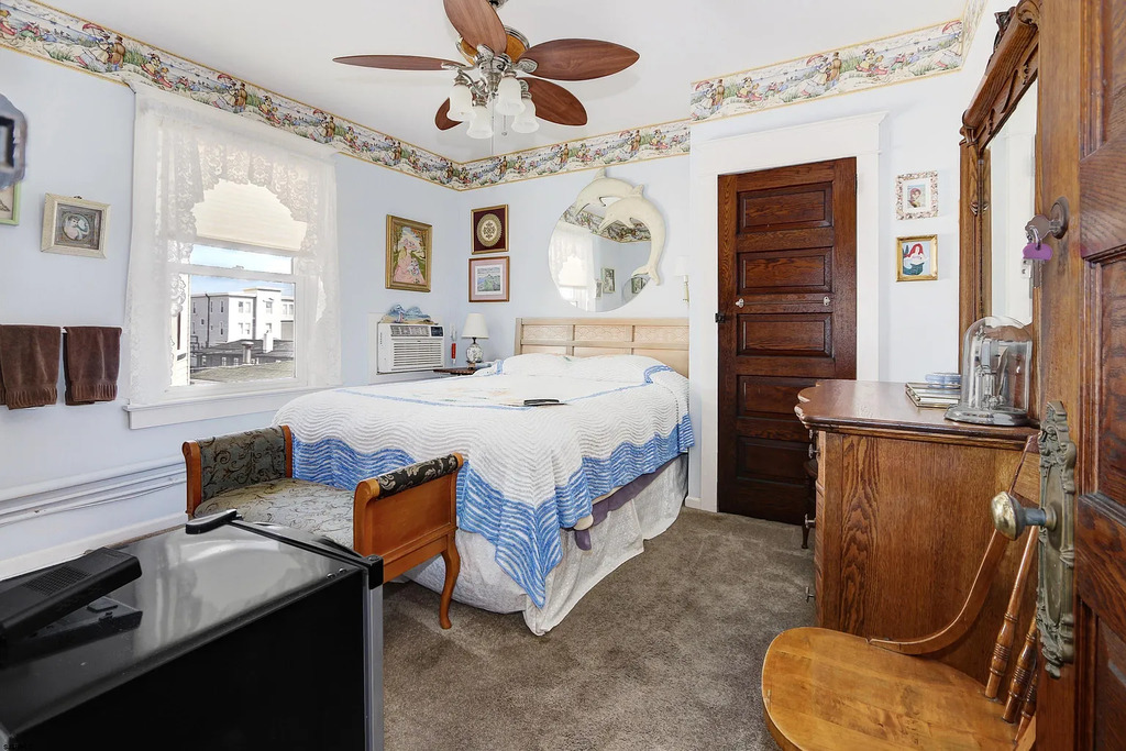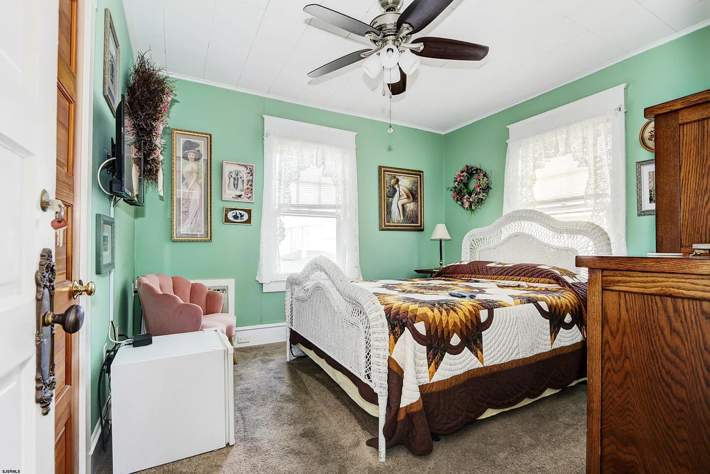 Welcome to Bayberry Inn, a rare and unforgettable Ocean City getaway located in the heart of the city’s celebrated Historic District. Set along beautiful Wesley Avenue, surrounded by Ocean City’s most iconic early-1900s homes, this lovingly preserved property offers a stay that feels timeless, elegant, and truly one of a kind. Originally built in 1910 and thoughtfully renovated, Bayberry Inn blends classic craftsmanship with modern comfort—from the stately exterior and inviting front porch to the warm historic character found throughout the home. Step inside through the charming vestibule and foyer, where original woodwork and a grand oak staircase welcome you into spacious gathering areas, including a formal parlor and beautifully appointed dining space—perfect for making memories together.